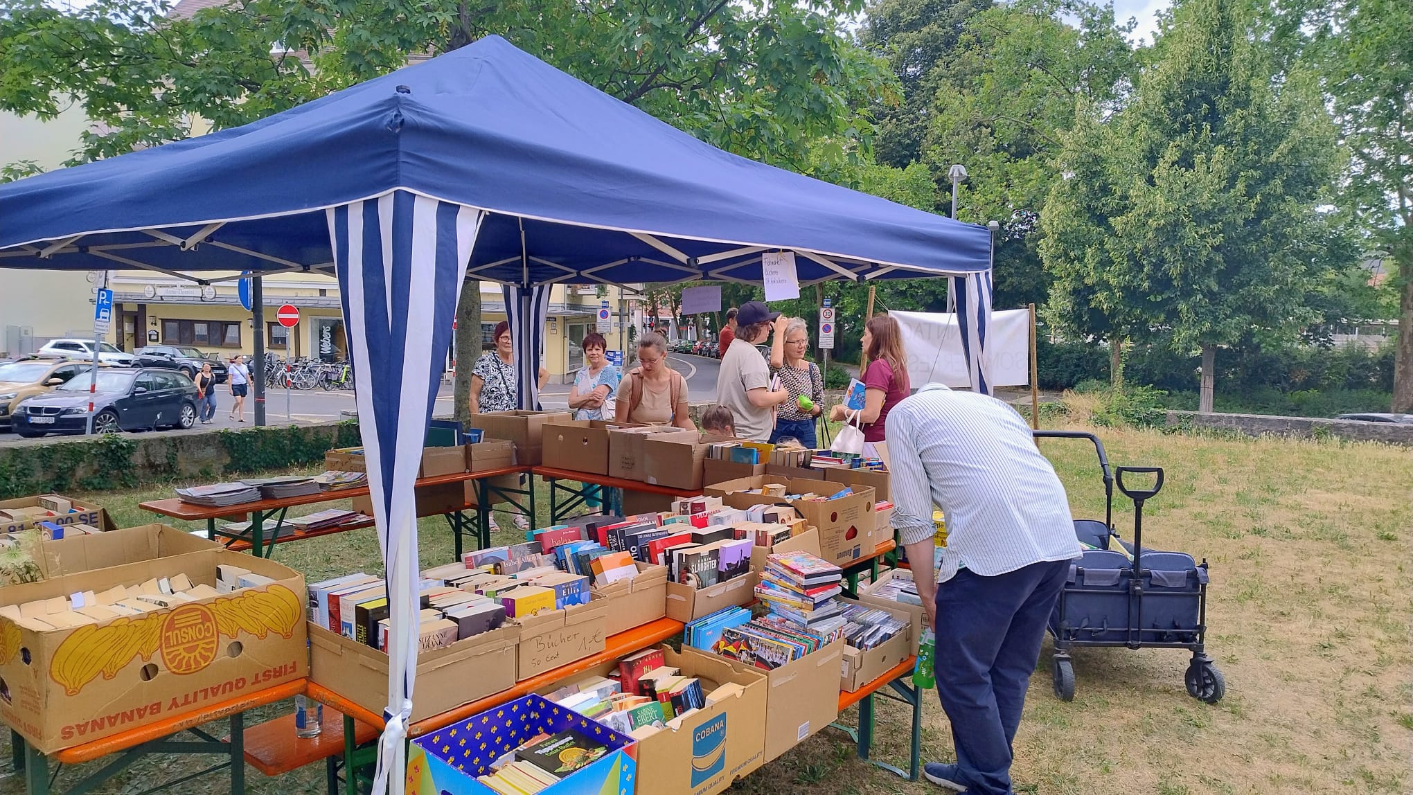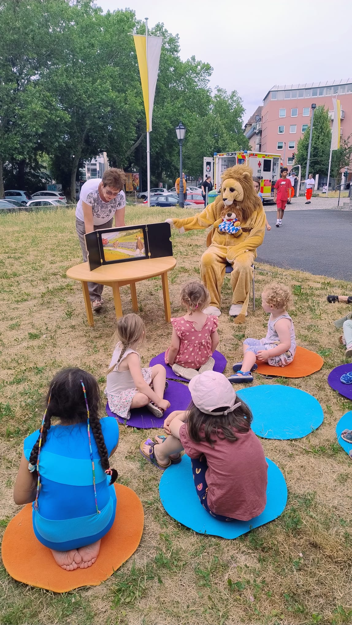Die Bücherei St. Adalbero war beim Sommerfest der Pfarreien in der Sanderau mit einem abwechslungsreichen Programm vertreten: Ein bunter Bücherflohmarkt lud zum Stöbern ein, die kleinen Leserinnen und Leser konnten ihrer Kreativität beim Basteln freien Lauf lassen, und das beliebte Kamishibai-Theater sorgte für staunende Augen. Ein besonderes Highlight war der Besuch des Leselöwen, der Groß und Klein begeisterte.