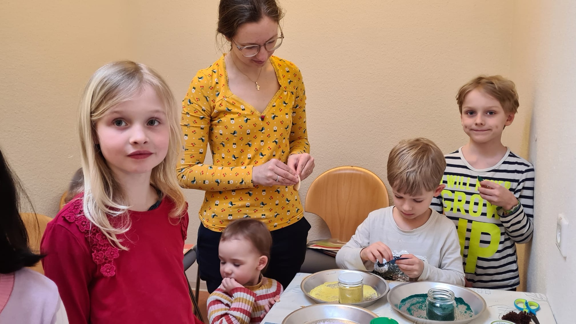 Osterschmuck und Osterkarten basteln, so lautete das Motto der Bastelnachmittage der Bücherei St. Adalbero. Eifrige Bastler ab dem Vorschulalter waren an mehreren Basteltischen wird mit verschiedenen Materialien am Werk und führten mit Sorgfalt und Kreativität ihre Osterbastelei aus.