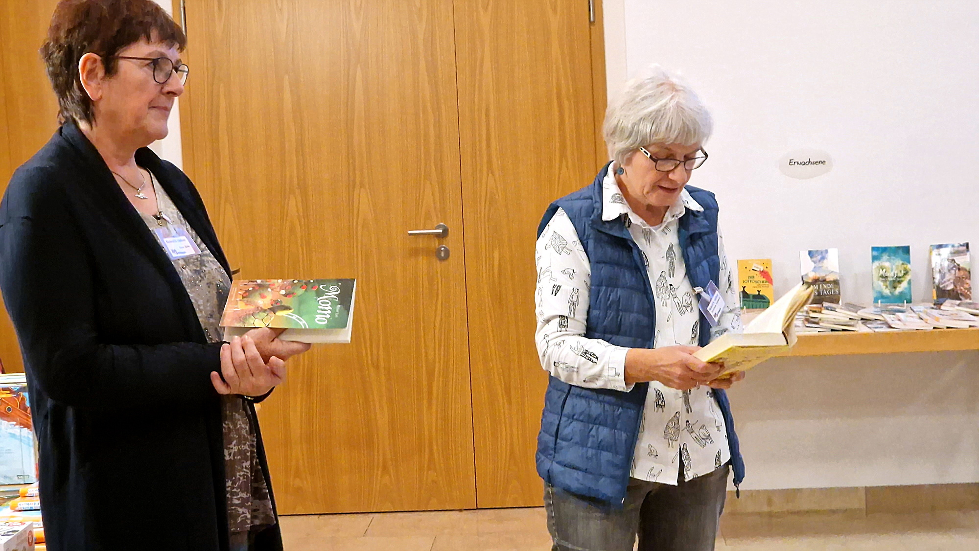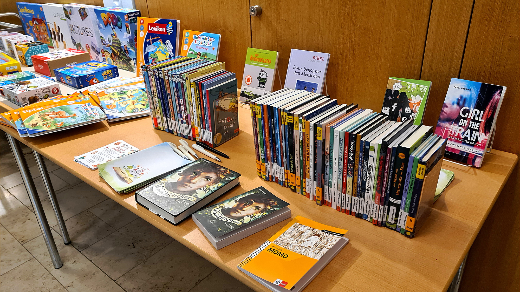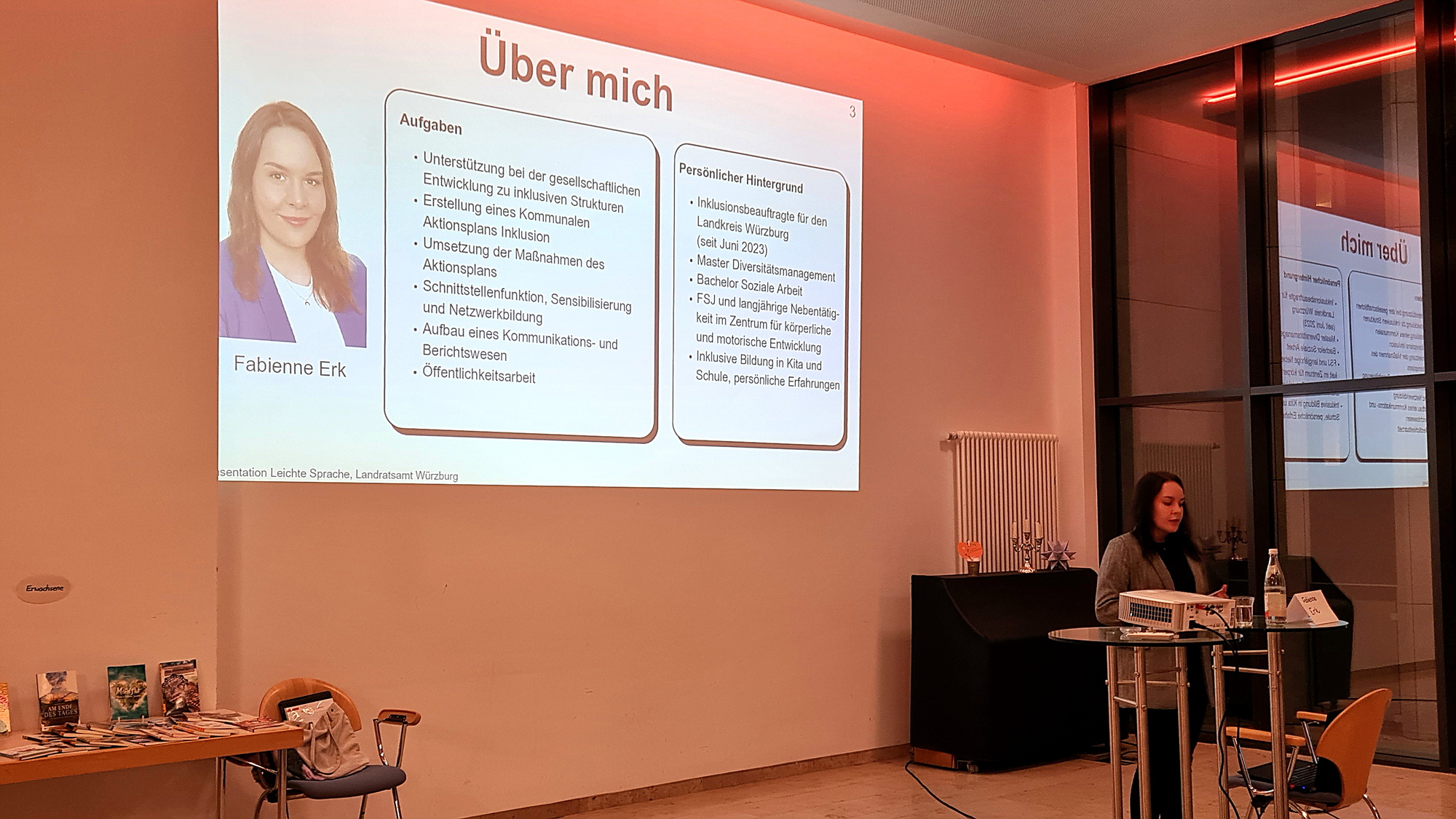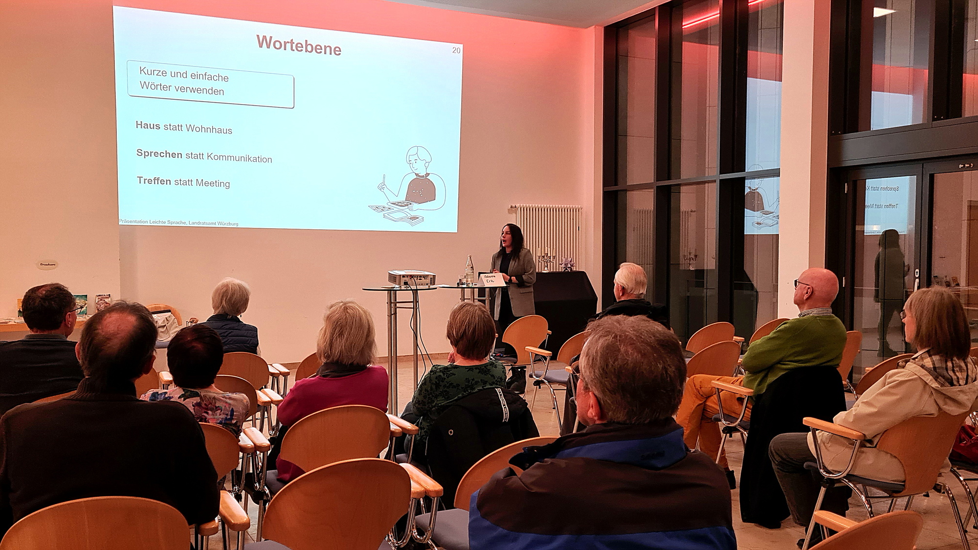 In Zusammenarbeit mit dem Landratsamt wurde von Fabienne Erk, Inklusionsbeauftragte des Landkreis Würzburg in St. Adalbero im Haus der Kirche eine Präsentation zur Leichten Sprache gezeigt. Von Karin Bohn (Büchereileitung) und Christiana Vormwald konnten sich im Anschluss an die Präsentation alle Besucherinnen und Besucher durch eine Buchlesung aus dem Roman das kleine Mädchen "Momo" in der Normal Ausgabe und im Vergleich mit Einfacher Sprache ein Bild machen. Bücher zum Schmökern wurden in einer Buchausstellung gezeigt und können in der Bücherei St. Adalbero ausgeliehen werden.