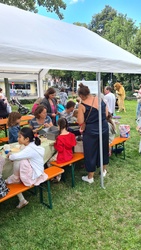 Die Bücherei St. Adalbero beteiligte sich am Sommerfest der Sanderauer Pfarreien mit einem Bücherflohmarkt, Bastelaktionen, dem Kamishibai Erzähltheater und dem Leselöwen. Große als auch kleine Besucher konnten in gemütlicher Atmosphäre stöbern, basteln und sich von spannenden Geschichten am Erzähltheater verzaubern lassen. Das Fest war ein großer Erfolg und eine tolle Gelegenheit, die Bücherei und ihre vielfältigen Angebote kennenzulernen und einen schönen Tag mit der ganzen Familie zu verbringen. Ein herzliches Dankeschön an alle ehrenamtlichen Helferinnen und Helfer, die mit ihrem Einsatz und ihrer Begeisterung das Sommerfest der Sanderauer Pfarreien zu einem besonderen Erlebnis gemacht haben.